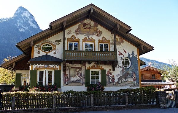 Die farbige Gestaltung von den Hausfassaden in der Region Oberammergau, Mittenwald, Garmisch, … sollte zum einen die Illusion von Architektur vermitteln, Säulen, Treppenanlagen, Fenster und Türen darstellen, die es in Wirklichkeit gar nicht gab. Zum anderen in der häufigen Darstellung von Heiligen und biblischen Szenen fanden dann persönliche Schutzbedürfnisse und die Gläubigkeit der katholischen Bevölkerung ihren Ausdruck.